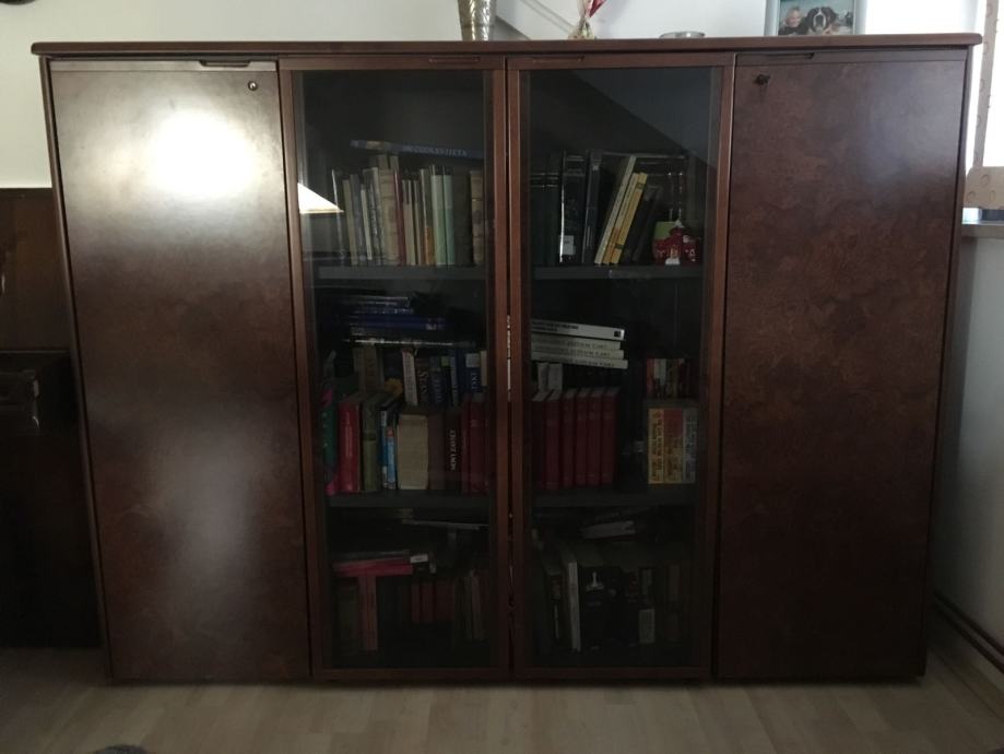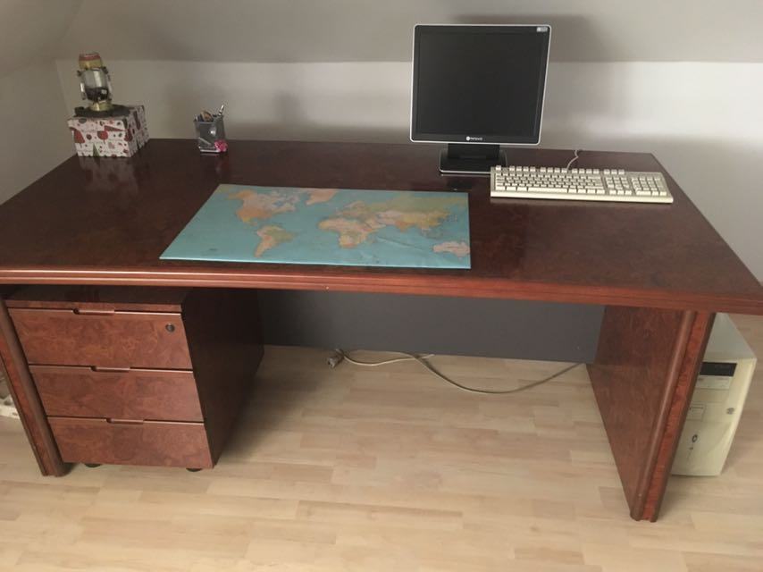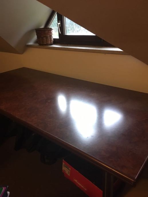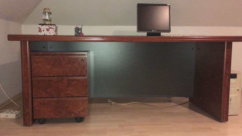 -RADNI STOL SA KAZETOM ,KONFERENCIJSKI STOL,MALA KOMODA (POGODNA ZA UREDSKE UREĐAJE), I VELIKA KOMODA (2 STAKLENA VRATA I 2 DRVENA VRATA). I DVIJE STOLICE (NA FOTOGRAFIJI).