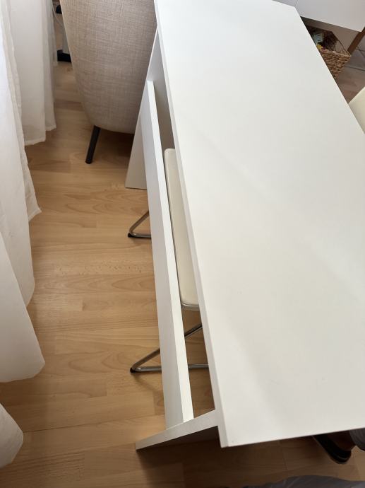 Jednostavan radni stol sa policom na razvlačenje. Odličan za male prostore, dovoljan za rad na laptopu. Očuvan, bez oštećenja. Kupljen u JYSKu