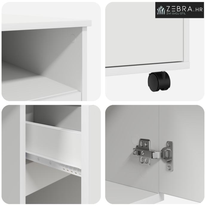 Praktične police i ladice: Opremljen policama i ladicama od inženjerskog drveta, olakšava organizaciju i pohranu, omogućujući vam da brzo dođete do potrebnih stvari, dok održava radni prostor urednim.