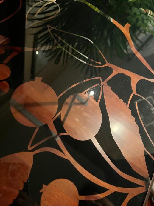 Stol je mjestimično ogreban, što sam pokušala zahvatiti kamerom. Staklo je čitavo i kaljeno.