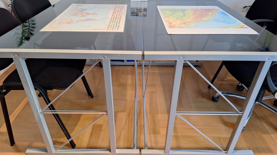 Tri radna stola, iznimno atraktivni, od kaljenog stakla, u odličnom stanju. Ukupna cijena stolova: 249,00 EUR-a.