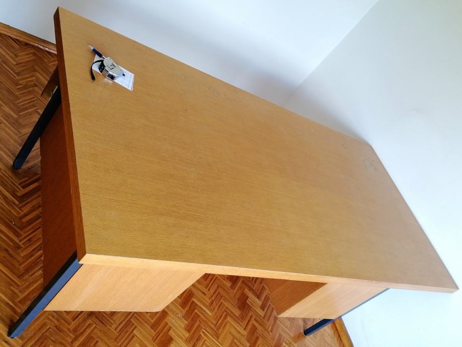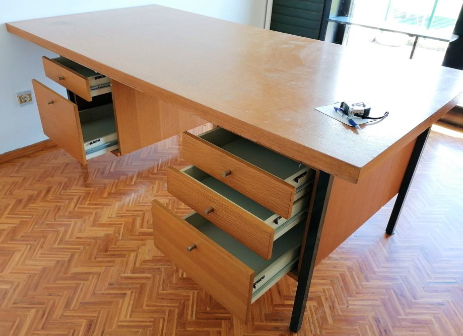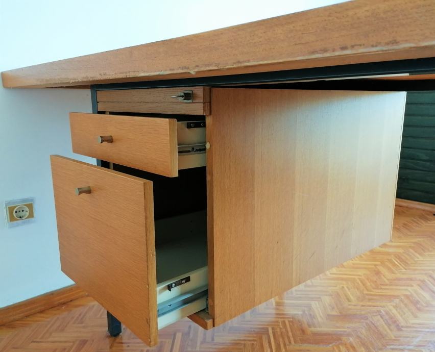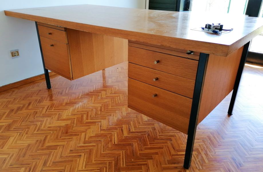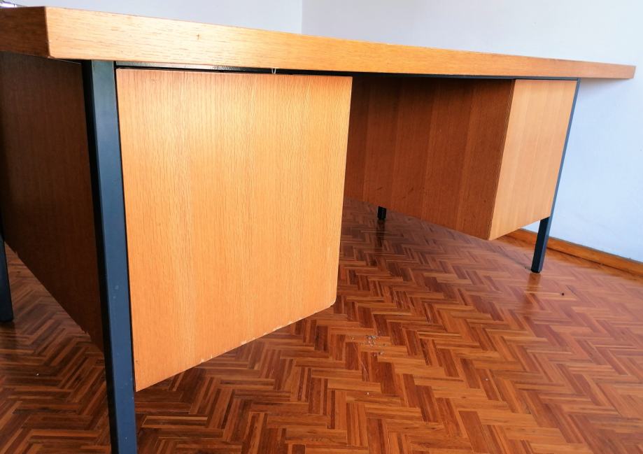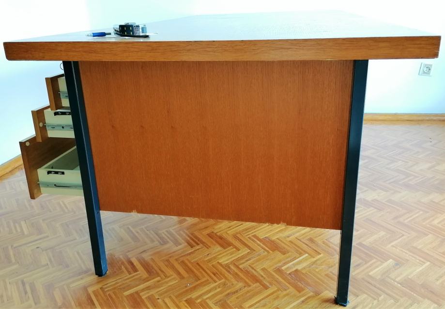 Izrađen od drva i metala, sa završnom površinom drveni furnir.