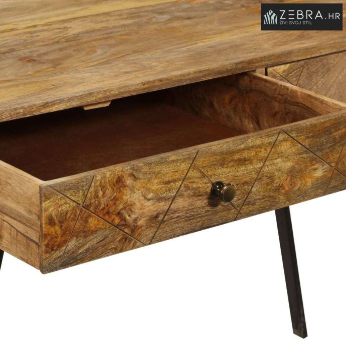 Površina stola napravljena je od masivnog drva manga s uljnim premazom. Snažne čelične noge doprinose čvrstoći stola, kao i njegovom industrijskom šarmu. Stol ima 2 ladice s dovoljno prostora za čuvanje vaših važnih predmeta organiziranima i na dohvat ruke.
