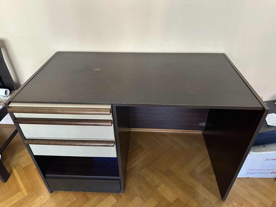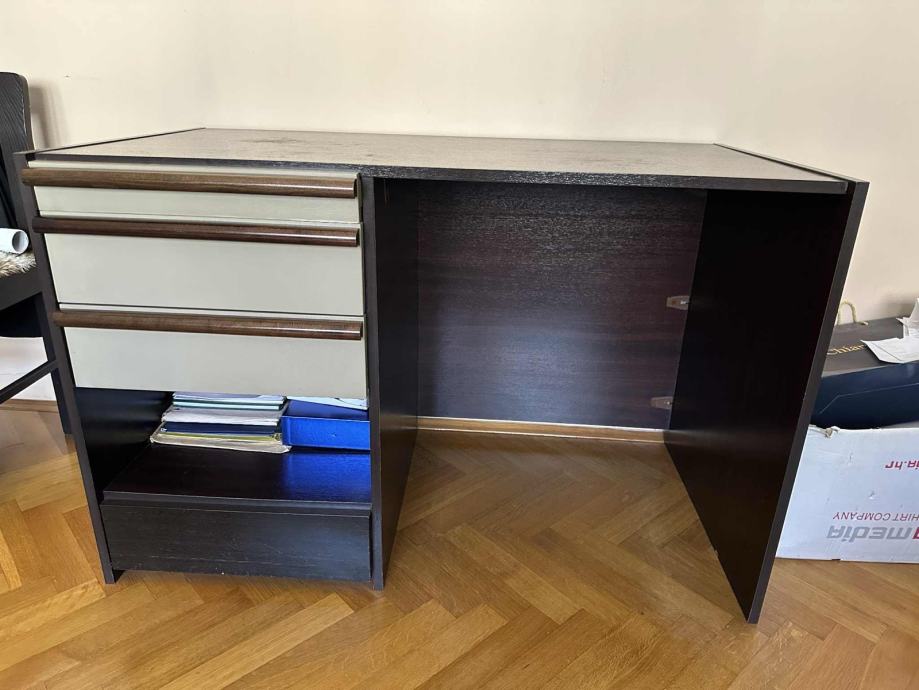 Drveni pisači stol. Kombinacija tamno drvo i kašmir.