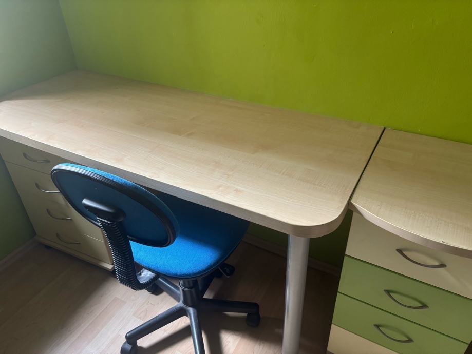 ✔ Glavni radni stol – dimenzije 150x60 cm, pruža dovoljno prostora za rad, učenje ili kreativne aktivnosti.