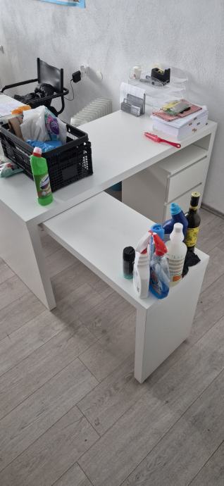 1 x Ikea Malm radni stol 151 x 65+ izvlačna ploča 40 x 70 novonabavne vrijednosti 119€ + dodatni ladičar Malm novonabavne vrijednosti 60€