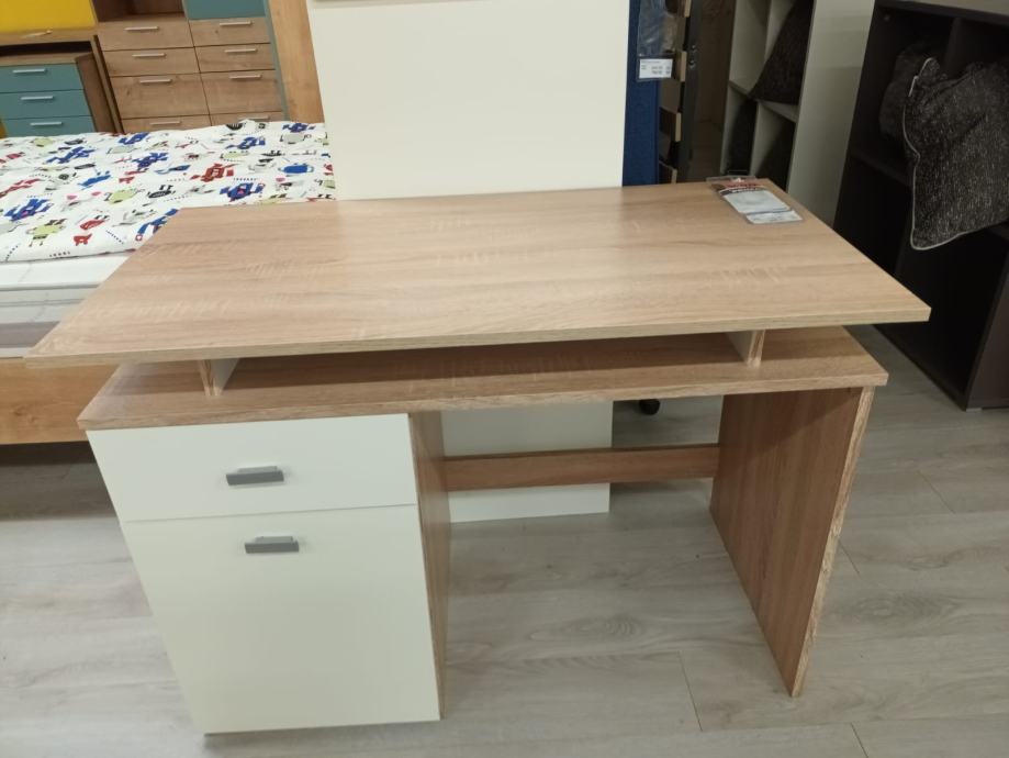Pisaći stol MARKO iz Prime. Stol je zapakiran kao iz trgovine, neotvaran i nekorišten. Dužina 109,5 cm, visina 107 cm, širina 55 cm.
