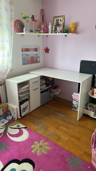 Prodajem bijeli radni kutni stol dimenzija 120cm x 120 cm x visina 72,5 cm