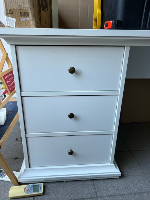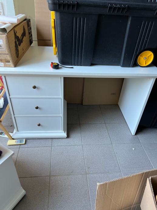 Radni stol bijele boje iz Lesnine nekoristen, montiran i pospremljen i garazu zbog najma stana u kojem ga stanari nisu trebali. Takodjer iz iste kolekvkje na drugom oglasu prodajem i natkasl. Dim. su : 130 cmx 62, visina je 73.5 cm