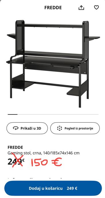 Radni stol kupljen u Ikea ducanu za 250€, u odlicnom stanju, malo korišten. Vrlo praktican i ima puno prostora za odlaganje stvari