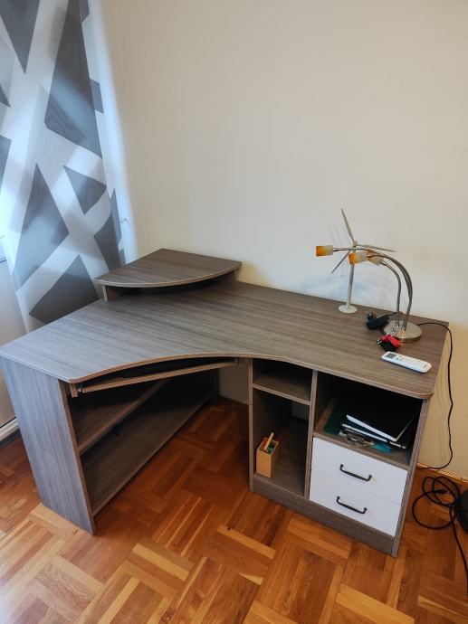 Prodajem kutni radni stol iz Lesnine. Star 5 godina, uopće nije korišten. Nema ogrebotine ni jedne, kao nov.