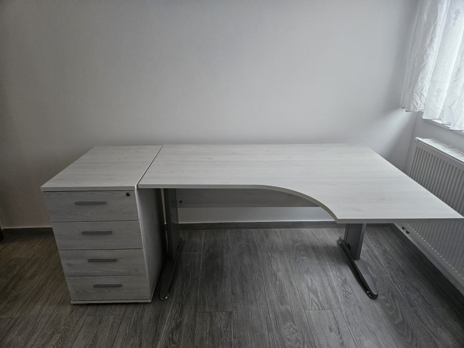 Lijepi svijetli radni stol za ured ili sobu s pripadnim ladičarom.