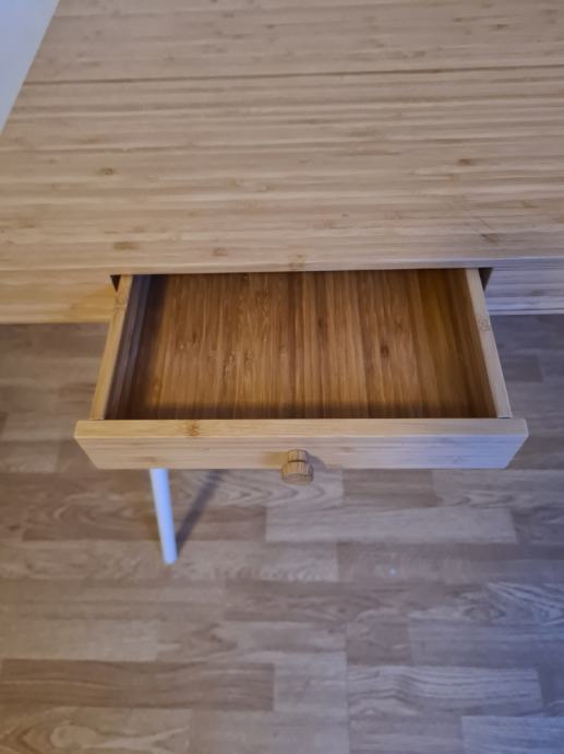 Radni stol, bambus, 102x49 cm. IKEA model: LILLÅSEN. Ima tri ladice veličine A4 za odlaganje papira i sitnica. U dobrom stanju, uščuvan. Vlastiti prijevoz. Upiti porukom ili emailom: anazilla02@gmail.com