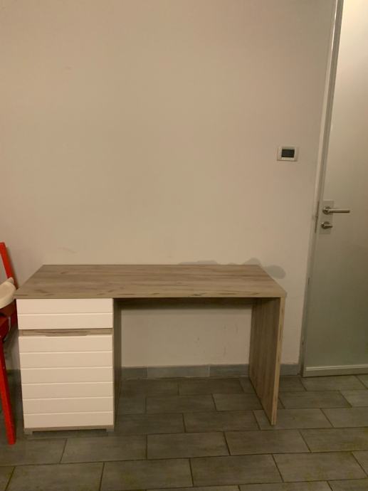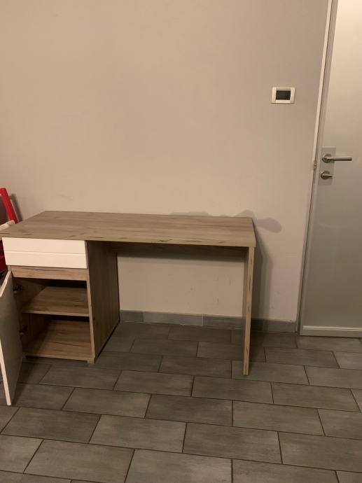 Radni stol, dobro ocuvan , bez ostecenja i ogrebotina, pogodan za ucenija ili za ured. Ima jednu ladicu i pretinac sa dvije police. Velicina je 130 x 50.