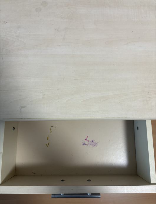 Ima vidljive tragove korištenja. Trebalo bi prefarbati radnu ploču stola, ali je generalno drvo u dobrom stanju. - Sve poslikano