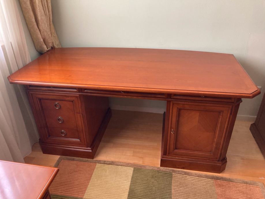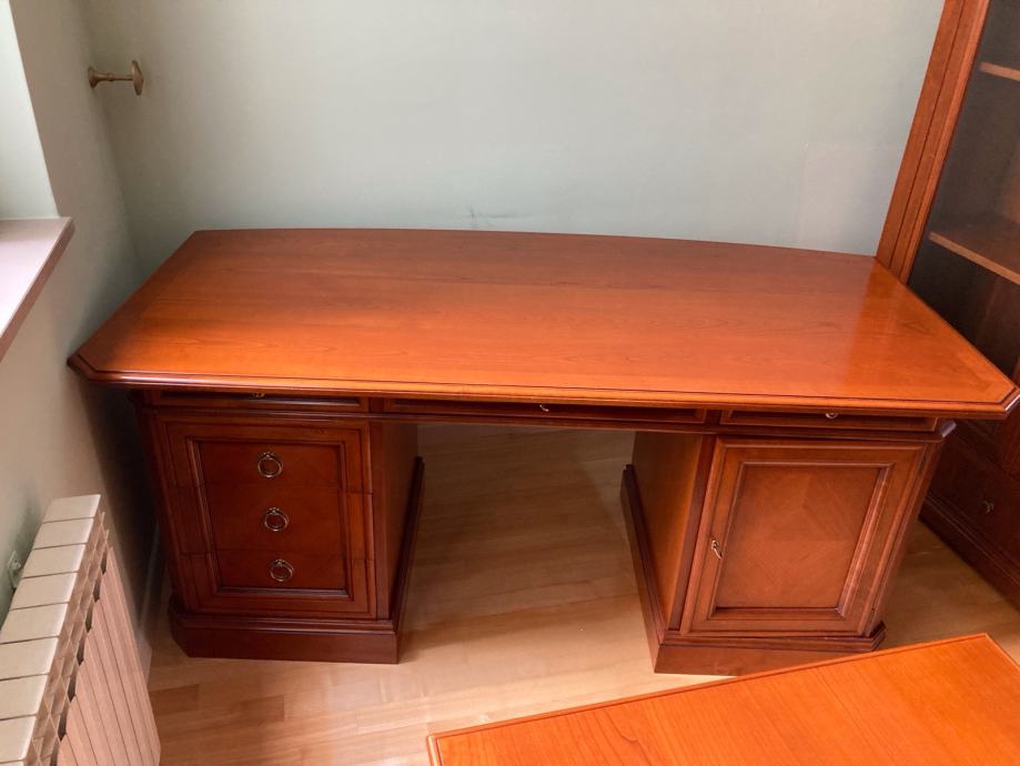Prodajem radni stol u odličnom stanju, talijanske firme Selva. Stol je od punog drveta. Ima šest ladica i jedan dio s dvije police. Dužina stol je 180 cm, širina 90 cm i visina 77 cm.