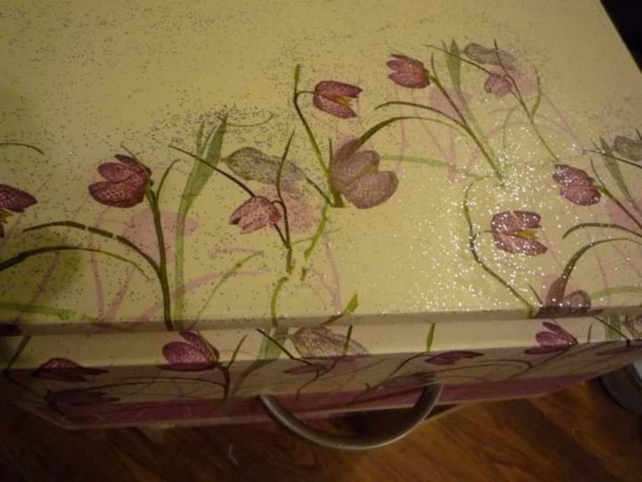 Prodajem radni stol koji mi stoji kao višak i nije u upotrebi. Stol na sebi ima uzorke rađene u posebnoj decoupage tehnici,puno drvo,masivan i težak,unikat.