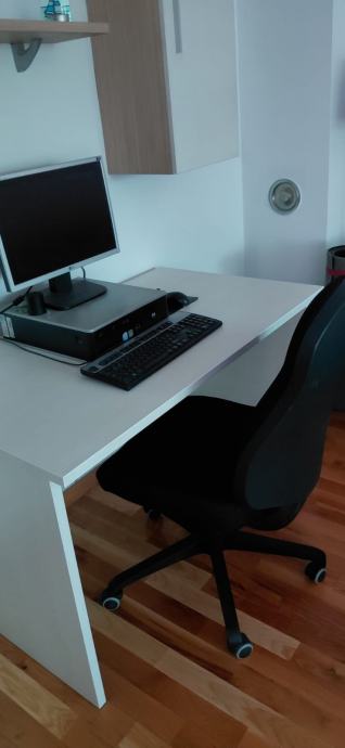 Uz stol dolazi uredska stolica bez rukohvata, ispravna.
