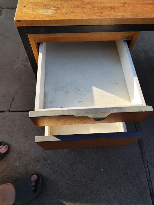 Prodajem stari očuvan teški uredski stol sa dvije ladice. Potrebno staviti ručke na ladice.