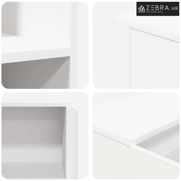Integrirana rješenja za pohranu: Recepcijski pult ima ugrađene police koje pružaju dovoljno prostora za pohranu uredskog pribora, dokumenata i osobnih predmeta, pomažući u organizaciji radnog prostora.