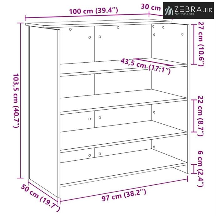 Ukupne dimenzije: 100 x 50 x 103,5 cm (D x Š x V)