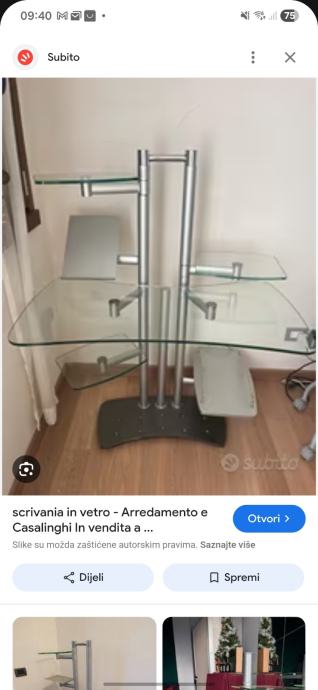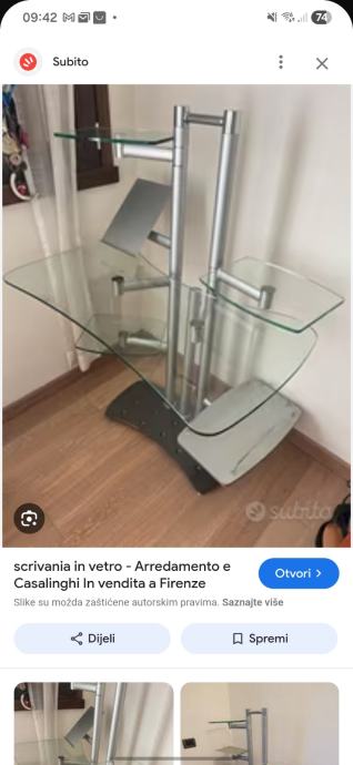 Stakleni stol za računalo, atraktivan, u dobrom stanju. Nedostaju 2 vijka za drveni nosač za toranj računala (mogu se kupiti u bilo kojoj željeznariji)...