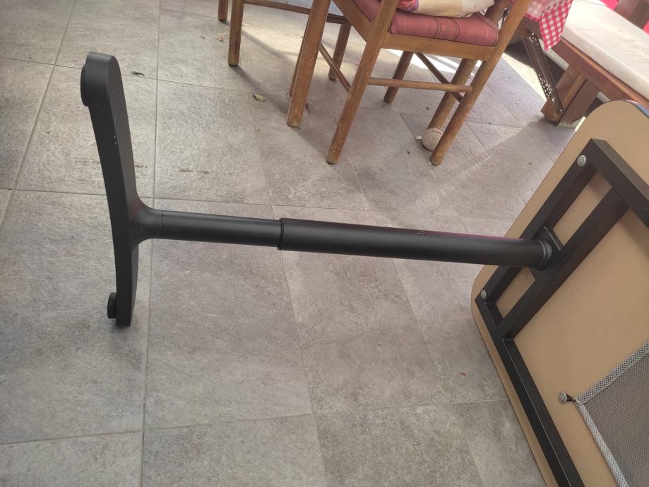 Stol za rad na računalu dimenzija radne ploče 140x60 cm, podesiva visina od 66 do 86 cm, 4 nogice za fino podešavanje. S donje strane radne ploče je mrežica za odlaganje kablova i pribora. Stol može poslužiti i kao TV klupa.
