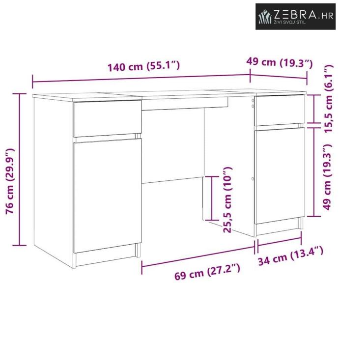 Sveukupne dimenzije: 140 x 49 x 76 cm (D x Š x V)
