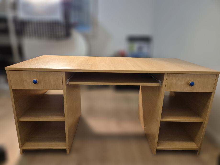 Stol je u odličnom stanju, vrlo očuvan i stabilan. Idealan za rad, učenje ili korištenje računala. Ima dvije ladice za pohranu te praktičnu izvlačnu policu (za tipkovnicu ili dodatni prostor za rad).