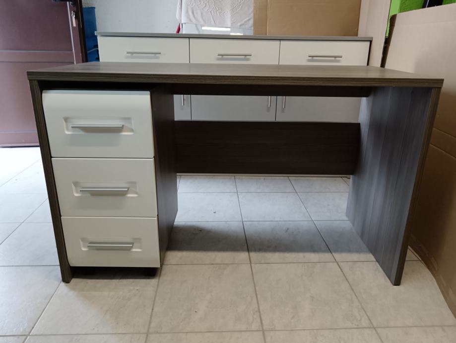 Stol za dječju sobu dimenzija; visina 72 cm, dužina 120 cm i širina 55 cm, ispod stola se nalazi ormarić sa ladicama koji je na kotačima i može se bez problema premještati. Stol je očuvan kao i ormarić.