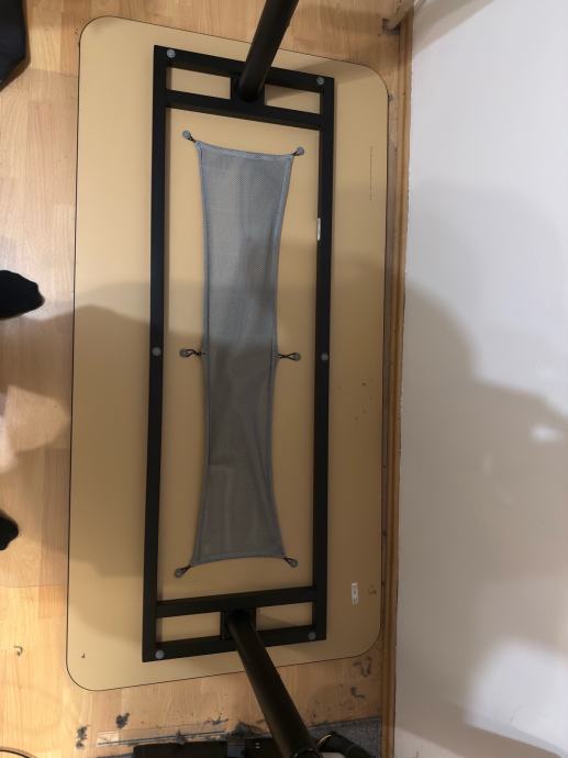 Stanje je kao novo, uredan, sastavlja se jako brzo (za 5 minuta). Nema oštećenja. Može se ručno podešavati visina. Ima mrežicu za kablove. Također dajem uz njega imbuse za sastavljanje i dizanje/spuštanje koji dolaze uz njega.