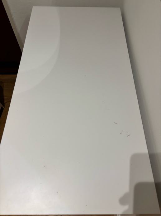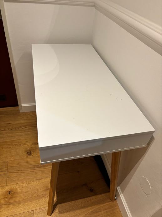 Prodajem uredski stol bijele boje s drvenim nogama u prirodnoj boji.