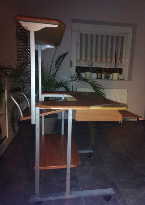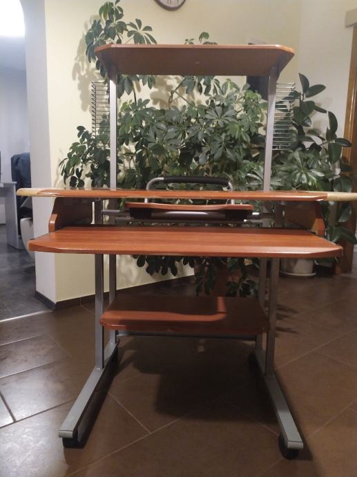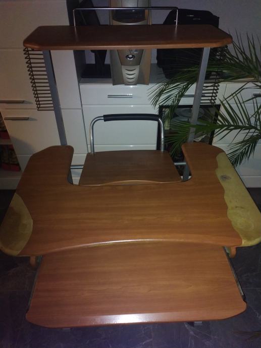 Prodajem stol za PC, oštećena gornja poha vidi se na slikama , odnosno odlijepio se dio presvlake. Stol je ukupne visine 123 cm, širine 90 cm, visina do prve plohe 74 cm.
