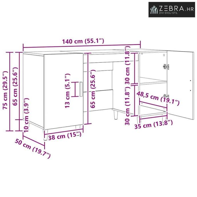 Kvaliteta materijala: Napravljen od vrhunskog konstruiranog drva, jamči dugotrajnost i eleganciju. Ova površina se ne iskrivljuje, pruža glatko radno okruženje bez nedostataka, idealno za korisnike koji traže funkcionalnost s stilom. Obilno skladištenje: S policama od drvenih dasaka i vratima na šarkama, nudi više opcija za skladištenje. Drži sve važne stvari pri ruci i uredno organizirane, što povećava produktivnost. Pristup je jednostavan, tako da efikasno upravljate svojim zadacima. Rustikalni industrijski stil: Ovaj stol ima rustikalni industrijski dizajn, spaja robustan izgled i funkcionalnost. Njegov pravokutni oblik i glatki završetak odražavaju suvremene ukuse, dok konusne noge dodaju klasičan dodir koji se uklapa u razne stilove uređenja. Potrebno sastavljanje: Malo sastavljanja uz dvoje ljudi i odvijač, omogućuje brzu i jednostavnu instalaciju. Ovaj proces omogućava korisnicima brzu upotrebu stolice bez dodatnih problema, osiguravajući da je sve čvrsto i stabilno. Upute za održavanje: Za održavanje stola u vrhunskom stanju, jednostavno ga obrišite vlažnom krpom. Redovito održavanje pomaže zadržati njegov sjaj i spriječi nakupljanje prašine, produžavajući mu životni vijek i očuvajući izgled tijekom vremena. Boja: Staro drvo