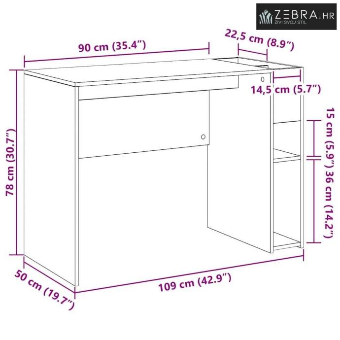 Obilno skladištenje: Ovaj stol je osmišljen s funkcionalnošću na umu, nudi brojne opcije za pohranu poput velikih pretinaca i polica, što ga čini savršenim za organizaciju stvari, a time poboljšava efikasnost radnog prostora.