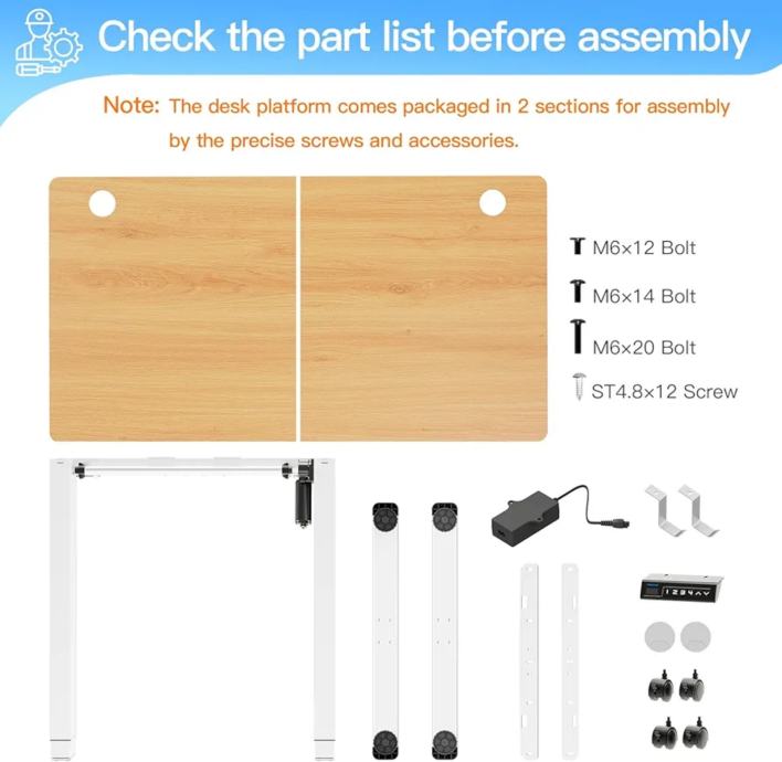 Jednostavno sastavljanje: Pružamo jasno ilustrirane upute (možda nisu na engleskom jeziku) kako bismo olakšali sastavljanje i korištenje ovog električnog stola. Ploča stola dolazi u dva dijela za veličine 100 x 60 ili 120 x 60 cm, a u tri dijela za veličine 140 x 60 ili 160 x 75 cm.