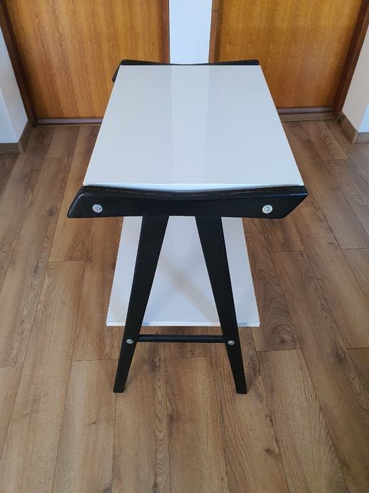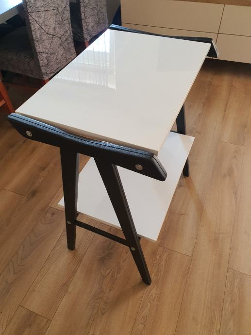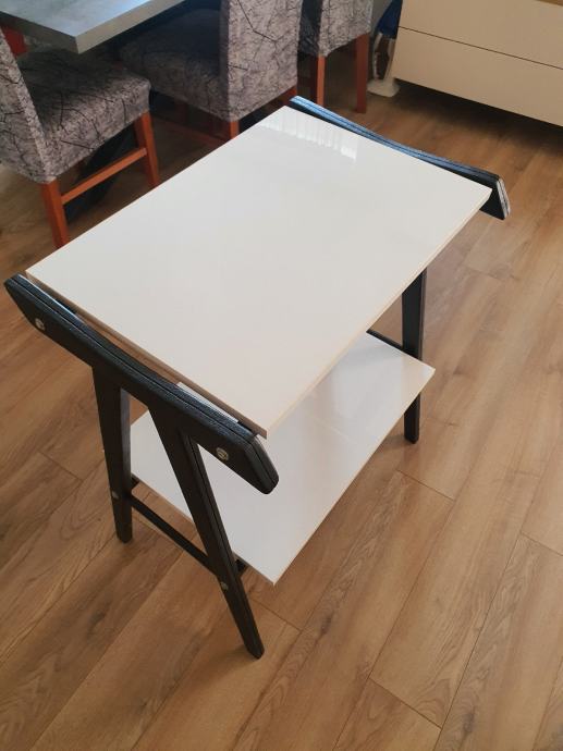 Stolić bjeli visoki sjaj police.Dimenzije 66×42cm ,visina 77cm zadnja cijena 70 eura..