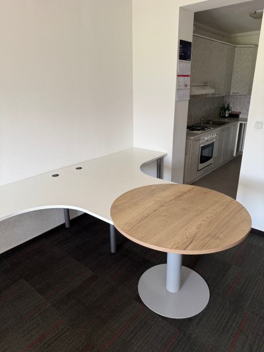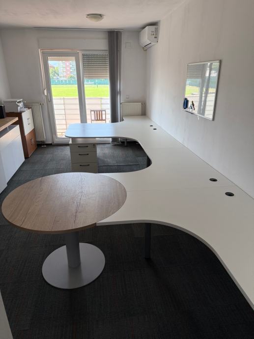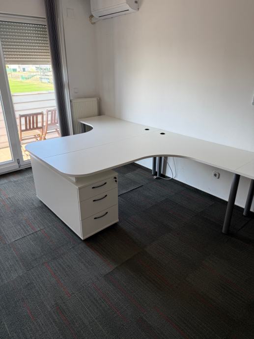 Prodajem stolove za ured za 4 radna mjesta. Stolovi se mogu složiti i u kvadrat tako da su 2 i 2 mjesta jedno nasuprot drugog. Uz stolove su i 2 ladičara sa ključem.