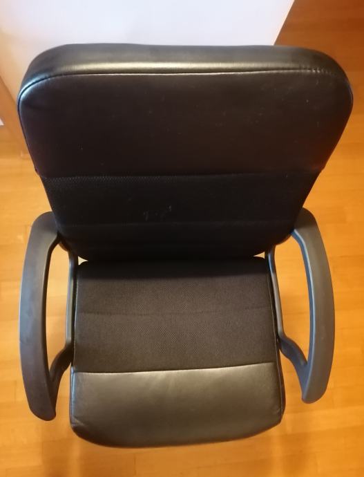 Sjedište i naslon su kombinacija ekokože i crne mrežaste tkanine. Rukonosnici su izrađeni od plastificiranog metala. Stolica posjeduje plinski amortizer s funkcijom regulacije visine.
