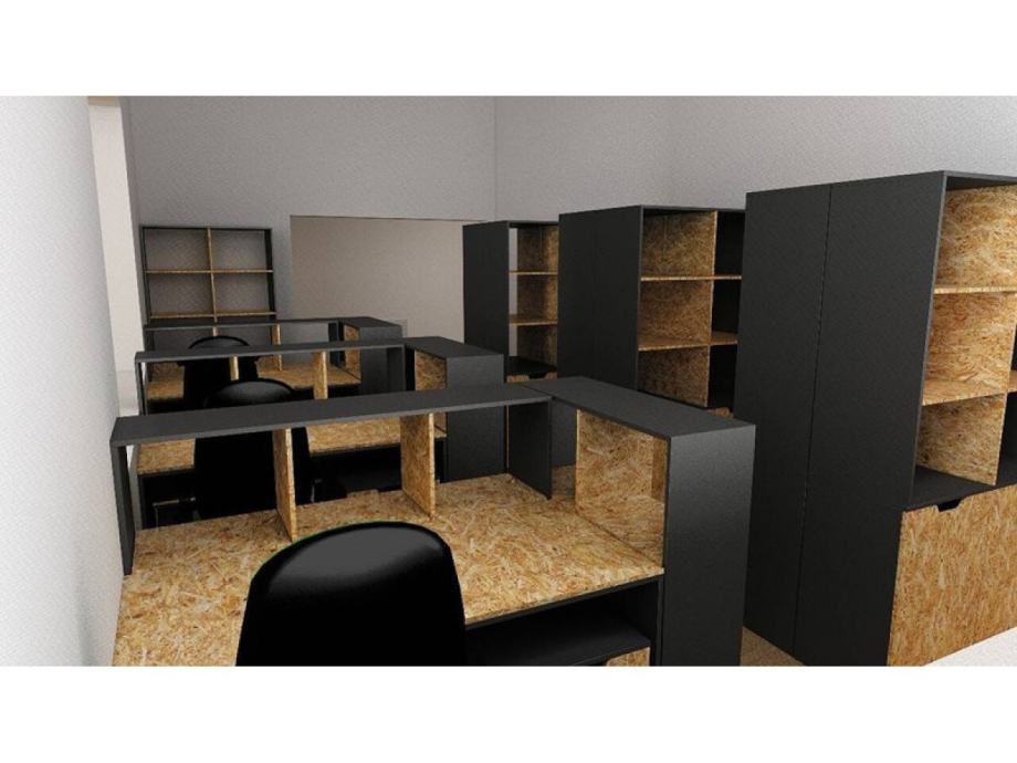 Uredski namjestaj modernog dizajna izrađen po mjeri od iverala u kombinaciji sa osb pločama