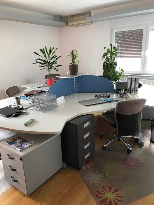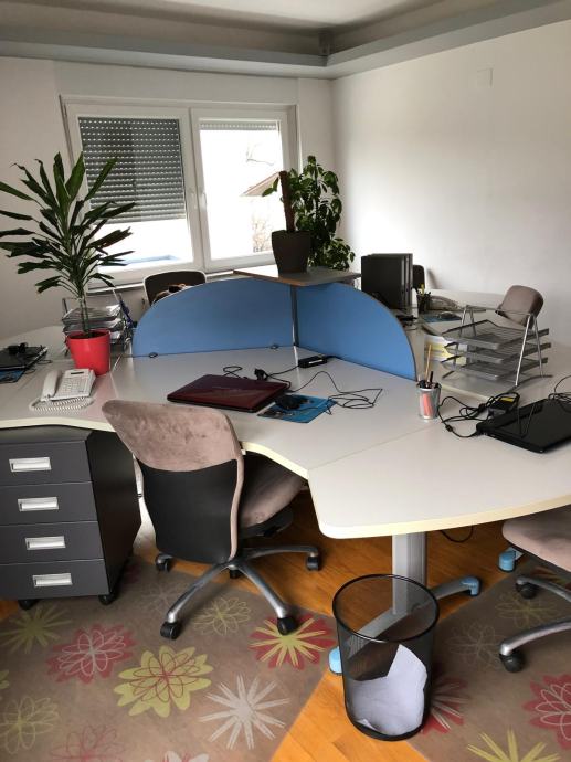 Prodajem radni stol sive boje izrađen od sivih ploča s metalnom podkonstrukcijom i metalnim nogama. Radna ploča debljine 20mm, pregradne stijene. Velčine fi 300 cm. Šest krakova za 6 radnih mjesta. Izuzetno čvrsta konstrukcija. Rabljeni ali dobro očuvan.
