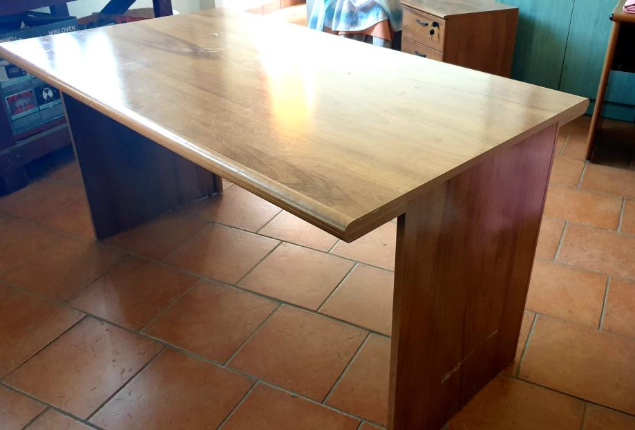 Prodaje se radni stol dimenzija 140cm×80cm i visina 72cm. Korišten, ima manjih ogrebotina na bočnim stranicama, ali to apsolutno ne umanjuje funkcionalnost stola.