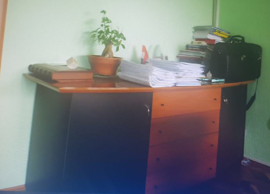 Visokokvalitetan i estetski luksuzan radni stol u kombinaciji s komodom za direktorski ured. Korišten u uredu obiteljske revizorske tvrtke.