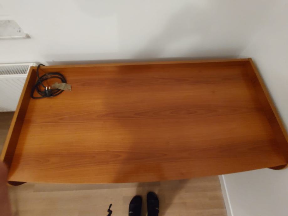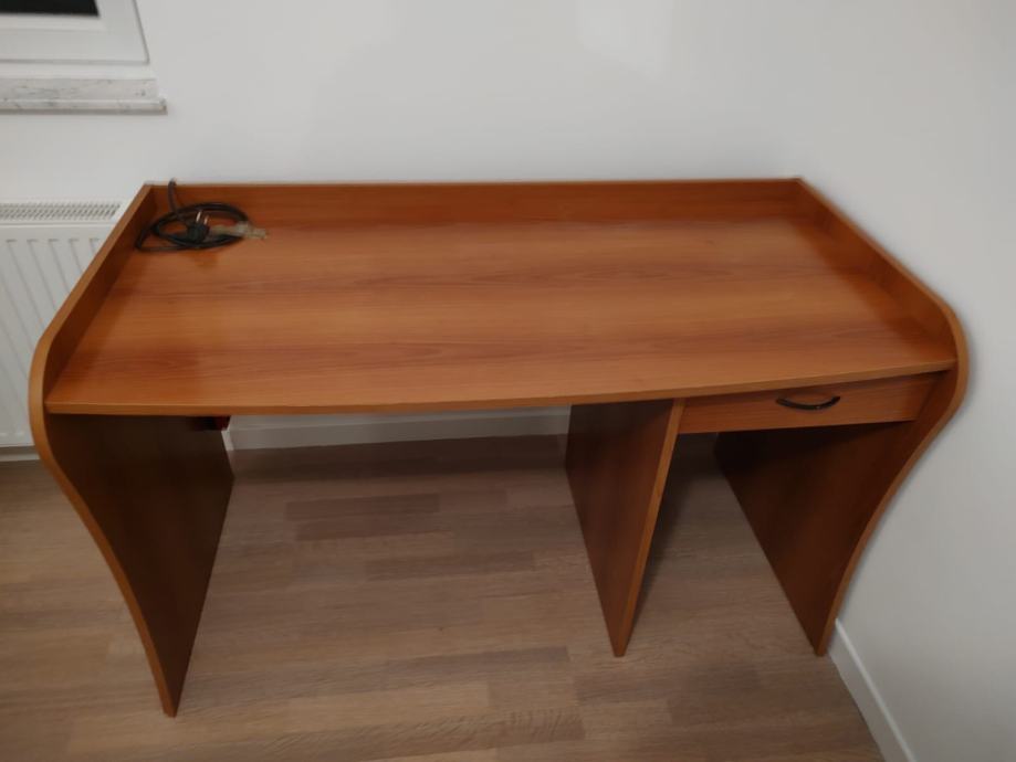 Prodajem uredski stol sa ladicom i ugrađenim produžnim kabelom. Stol je dimenzija 139x68x74. Iznimno očuvan, bez ijedne ogrebotine.