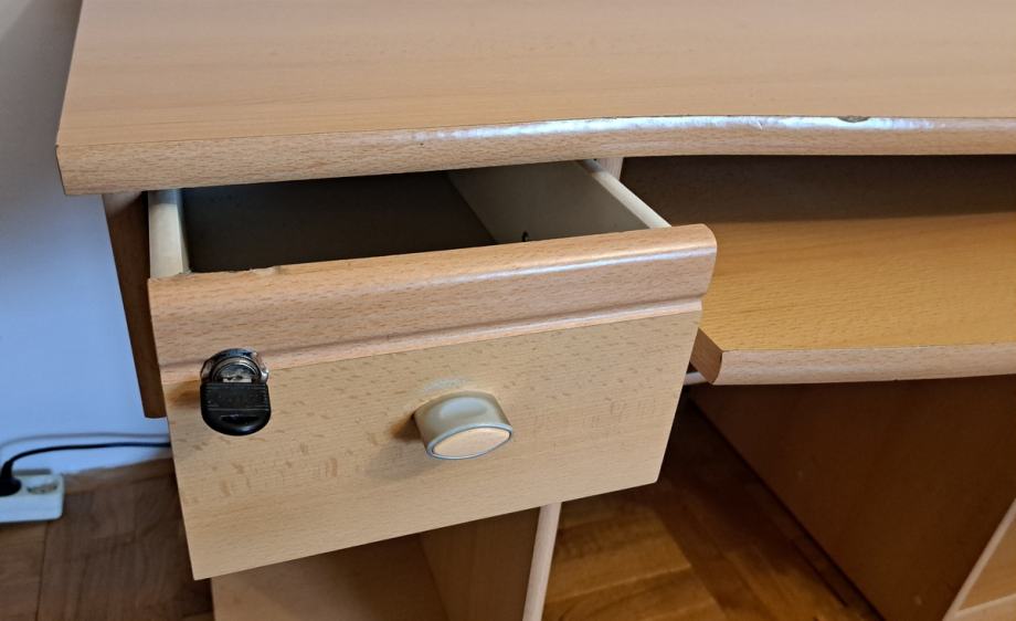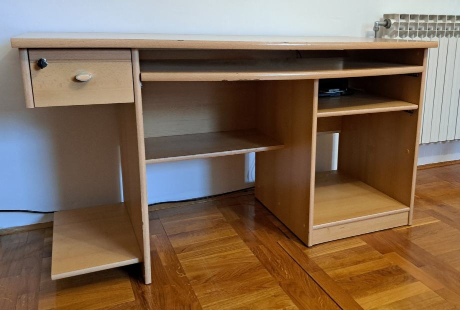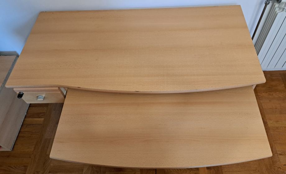 Dvije police na izvlačenje: - veća za PC tastaturu ili sl. dimenzije 102 x 50 cm, i desna donja polica dimenzije 45 x 45 cm