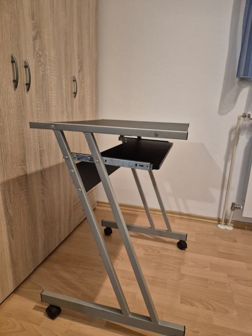 Prodajem jednostavni uredski stol s otvorenom ladicom i pokretnim kotačima. Stol je u potpunosti netaknut i nema gotovo nikakvih tragova korištenja. Prodaje se jer je višak.