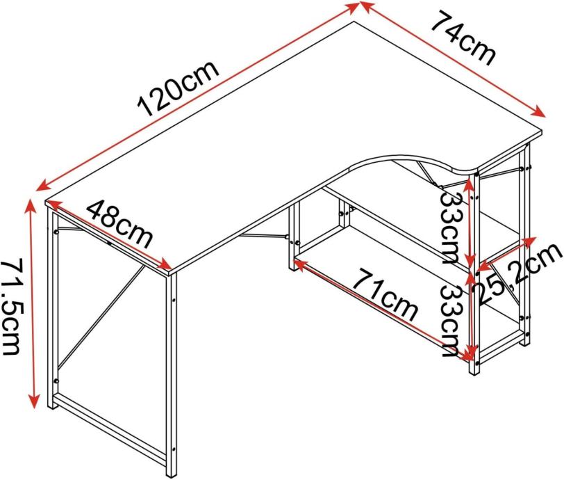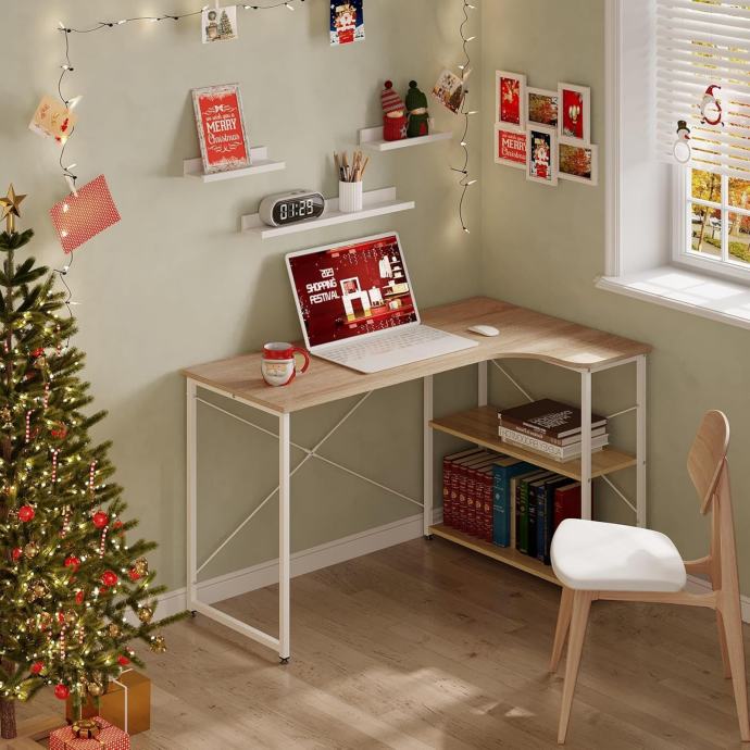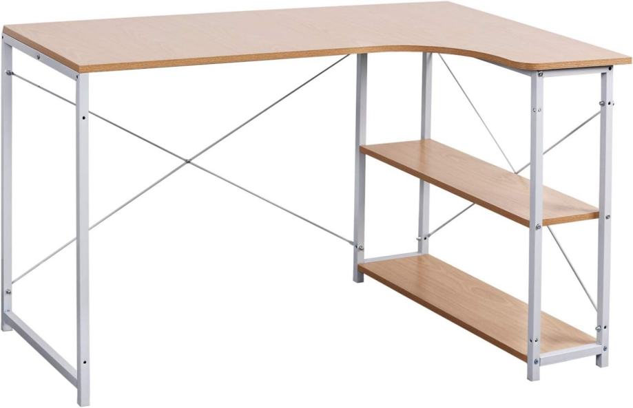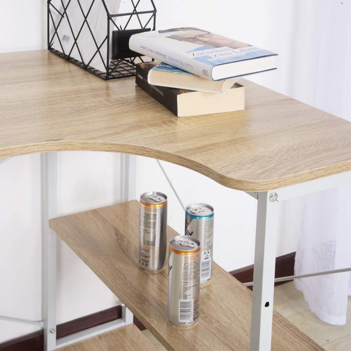 računalni stol s policom za pohranu, uredski radni stol za dom, spavaću sobu i radni prostor, radna stanica za prijenosno računalo, svijetli hrast i bijela, 120x73x72 cm