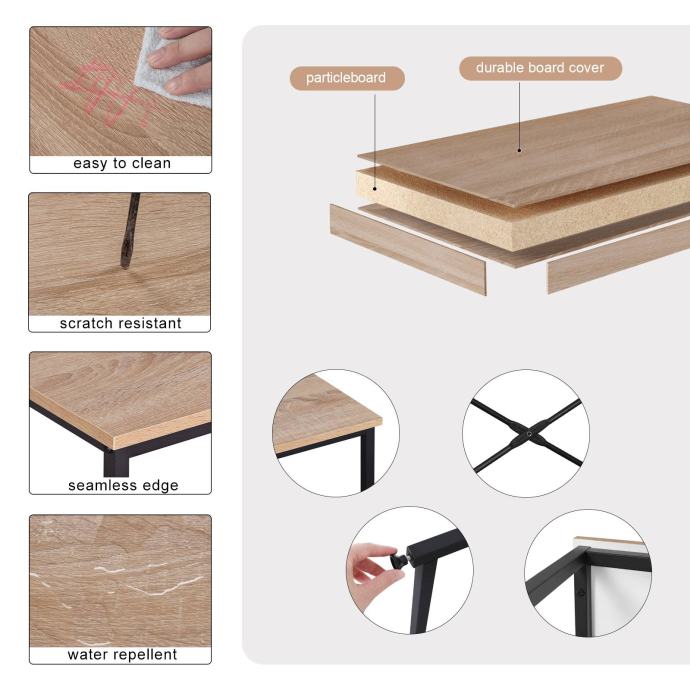 PREMIUM KOMPAKTNI RADNI STOL: Radna ploča izrađena od E1 inženjerskog drveta s furnirom, glatka, otporna na ogrebotine, bez mirisa i dugotrajna. Crni čelični okvir je stabilan, izdržljiv i otporan na hrđu i deformacije.