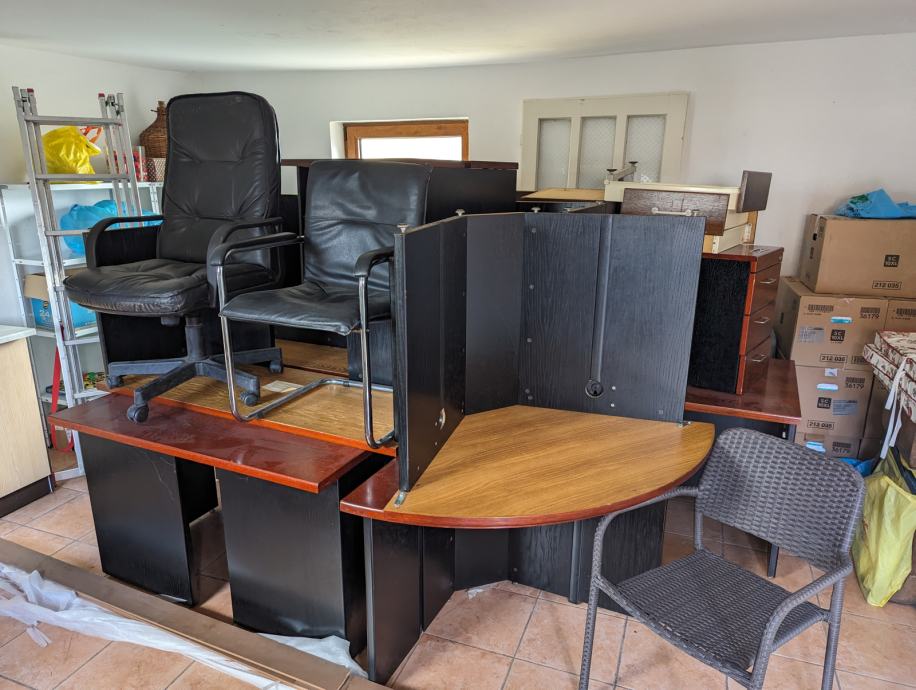 Prodajem uredske stolove s ladičarom proizvodnje TVIN Virovitica, rabljeni, 5 komada. Cijena 1000 € za sve stolove.