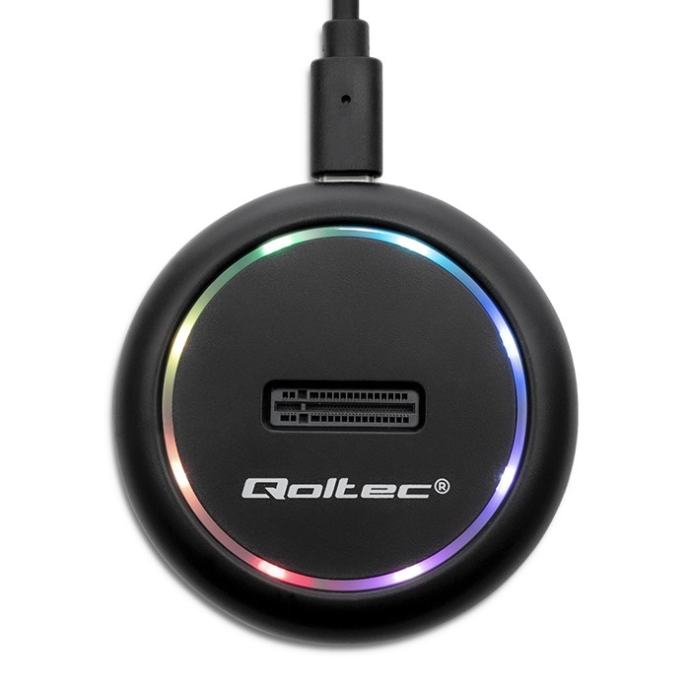 Stanica je kompatibilna s M.2 diskovima sa SATA i NVMe sučeljima. Nudi brzine prijenosa podataka do 10 Gbps. Uz to, Qoltec disk stanica je uređaj: